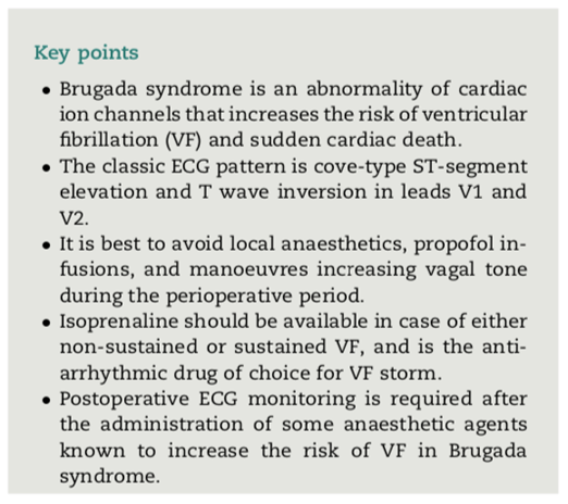 - Implications of Brugada syndrome for anaesthesia (see attached paper – summary below)